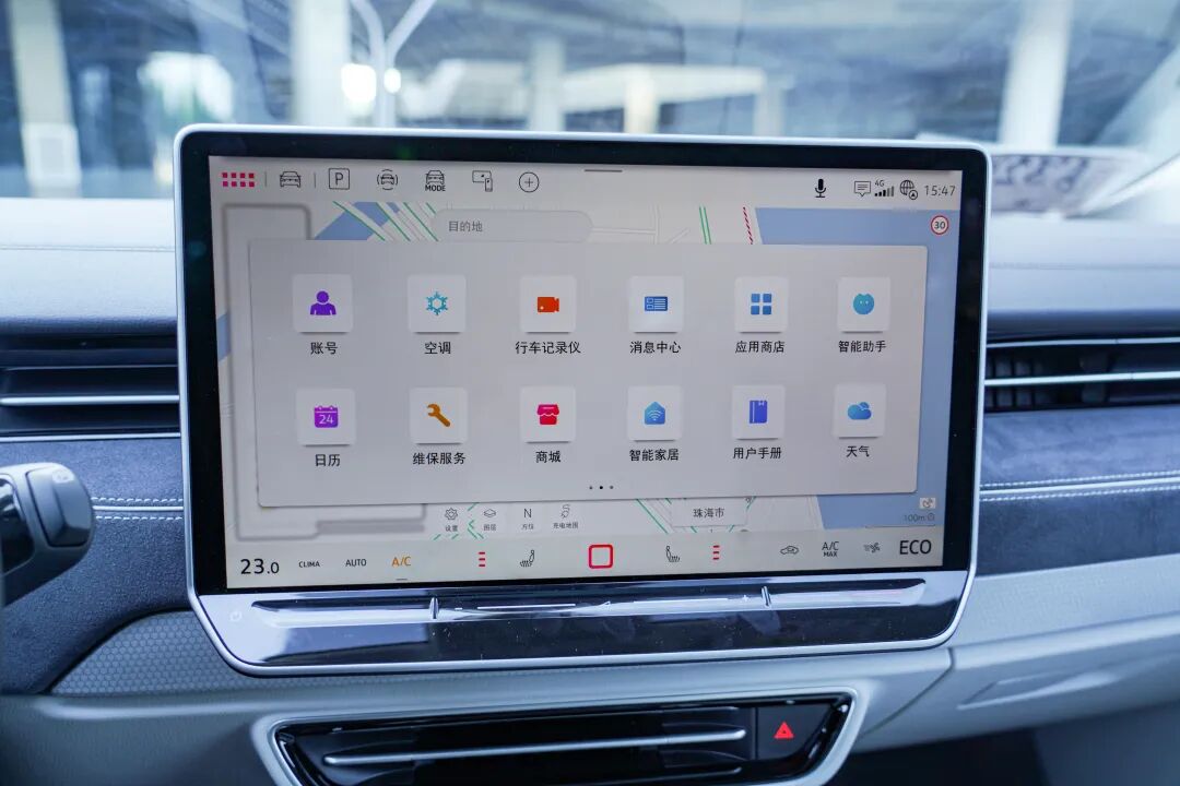 这块小屏我愿称之为创口贴仪表,如果大众不考虑用户的接受程度的话,我认为可以完全取消。因为上方配有AR-HUD抬头显示,可以投影车辆的基本形式信息、导航、预警、驾驶辅助信息等,非常全面。