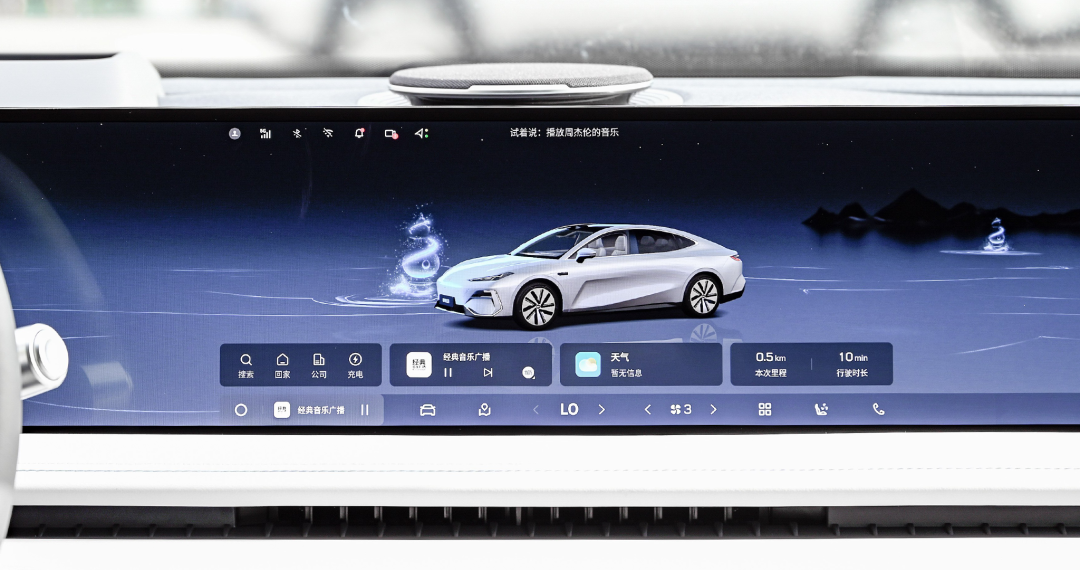 银河全景智慧座舱是银河E8的一大卖点,8K分辨率的45英寸全贯穿超薄大屏,内置银河N OS—无界版车机系统,并搭载骁龙8295芯片。整块屏幕的屏占比达到了98%,虽然内饰线条十分简洁,但得益于占据整个视觉重心的大屏,视觉效果依然震撼。