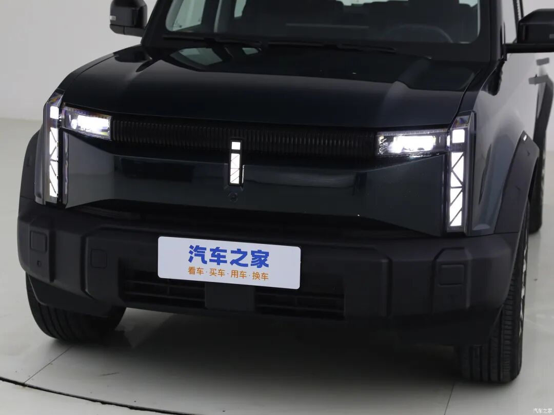 奇瑞iCAR 03前脸采用封闭式设计并且运用很多方正硬朗的线条,轮廓也是方正的造型。中心位置是形似字母i的可以点亮的品牌LOGO,前包围造型也展现出浓郁的硬派粗犷气息。