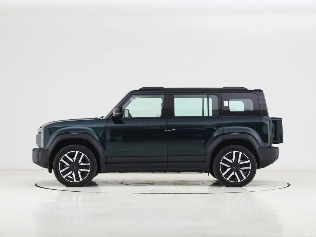 从侧面看,方盒子的感觉会更加明显,B/C/D柱基本都是竖直样式。外凸的轮拱上半部分与车身同色,下方则衔接有黑色塑料轮眉,饱满且气势十足。更短的前后悬设计,一来可以提升通过性,再者可以提升车内空间。