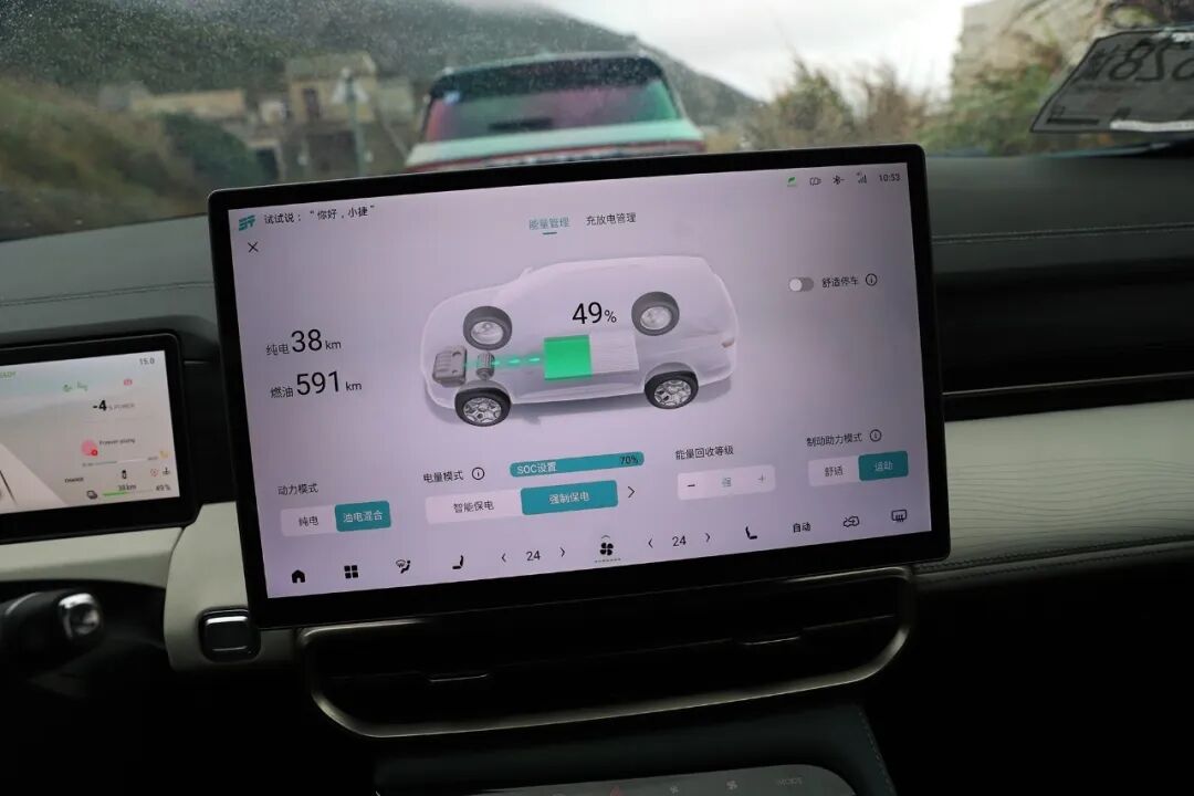 定位家用车的山海L9,底盘悬架标定自然是舒适取向。山海L9整备质量将近两吨,开起来从悬架反馈能够感受到车辆的“分量感”。或是出于试装车的原因,悬架经过连续短波起伏路段会传递到车内一些多余的振动,悬架扎实感、安分感还可以再提升。减速带等大颠簸路段悬架可以从容应对,柔化冲击并且处理地干练利落。
