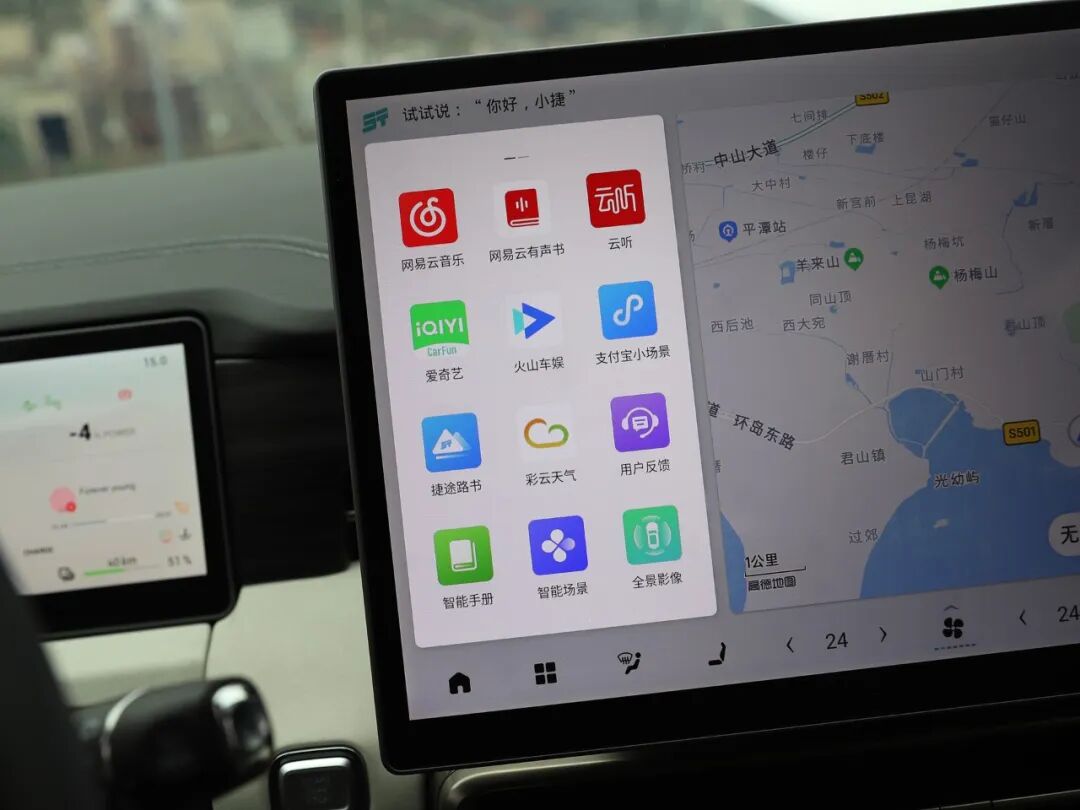 15.6英寸中控屏内置骁龙8155芯片,集成了在线导航、在线影音娱乐、智能场景、语音助手、全景影像、行车记录仪、车辆设置等功能。此外,试驾车型还有香氛系统和L2级驾驶辅助系统。