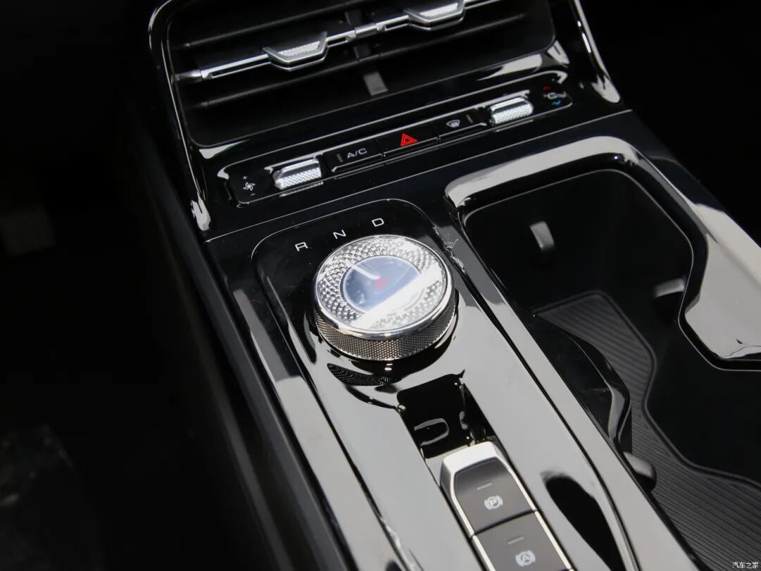 空调系统保留了实体按键,换挡机构采用电子旋钮式,后方是电子手刹、自动驻车和EV/HEV模式切换按键。