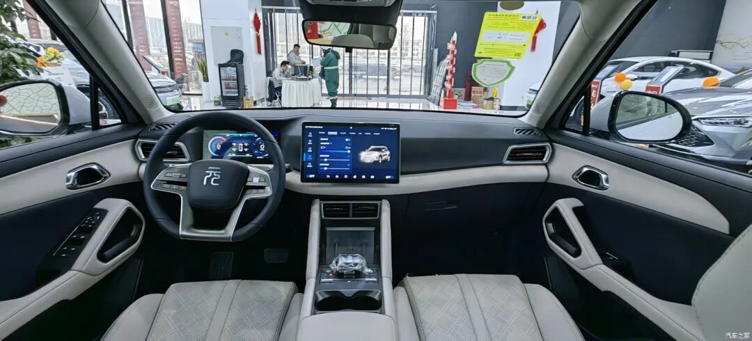 可以看到,新车内部依旧具备浓郁的比亚迪家族式设计风格,中控大屏+液晶仪表的组合我们已经非常熟悉了。此外,新车在多功能方向盘、挡杆附近均保留了一定数量的物理按键,对于不习惯触屏操控的朋友们很友好。