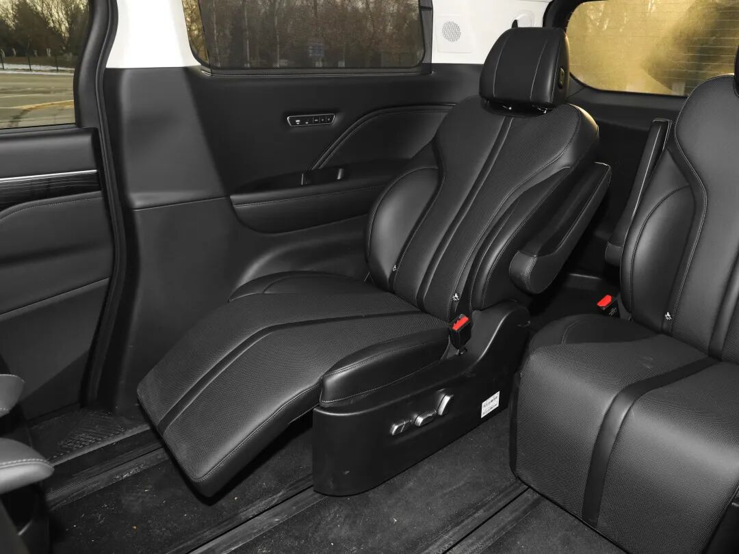 三排同样为两张独立座椅,配备的通风与加热功能就已经领先对手了,遮阳帘也未缺席。最顶的是这两张座椅也带有腿托,支持半躺的状态,而最大腿部空间达到了1090mm,不吹不黑,高山行政加长版的第三排比某些MPV的二排还要舒适。