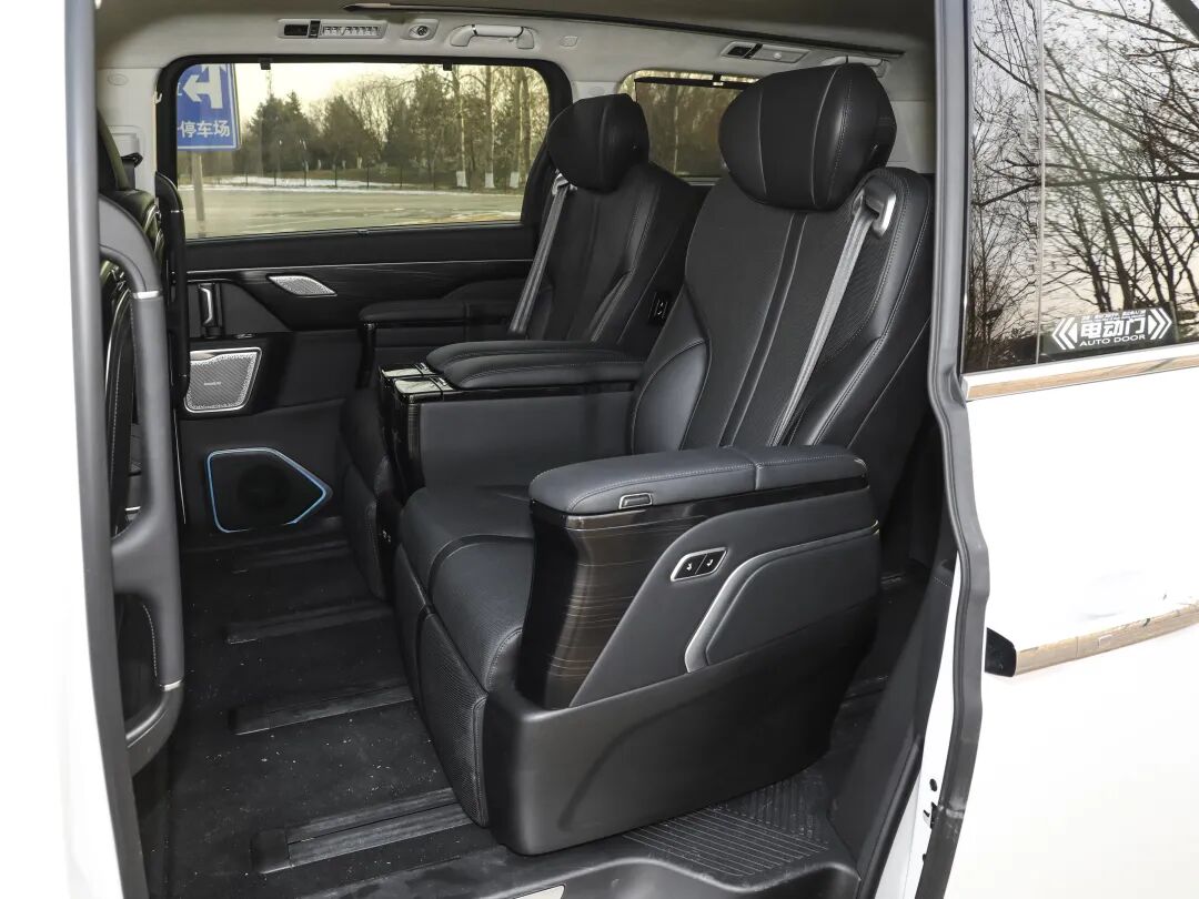 外观设计与普通版车型没有明显差异,依旧是气场强大、氛围豪华,最大的变化是车长和轴距,截止目前,它是最长的量产MPV,比奔驰V260L和即将上市的理想MEGA都有领先。车长达到5405mm,轴距3275mm,车内有效空间3823mm。那接下来就是“广阔天地、大有作为”了。