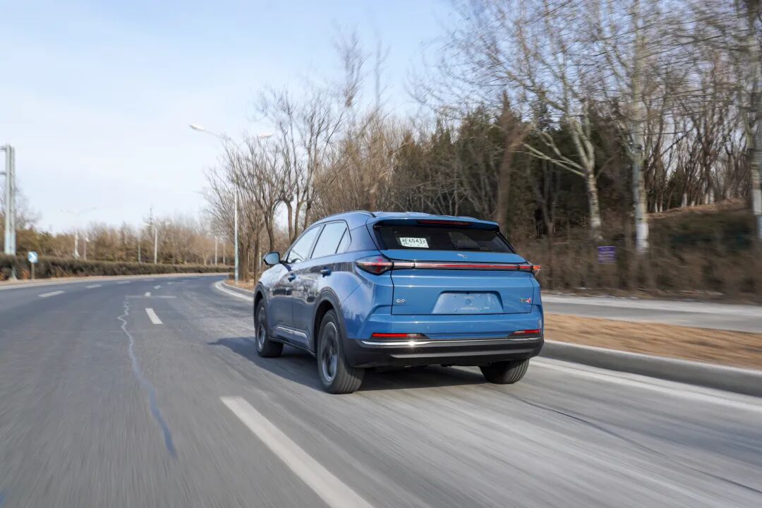 动力方面,试驾车采用永磁同步电机驱动,最大功率为120kW,最大扭矩210N·m,传动系统采用电动车单速变速箱,最高车速为150km/h。CLTC续航为501km。底盘采用前麦弗逊后多连杆的结构。