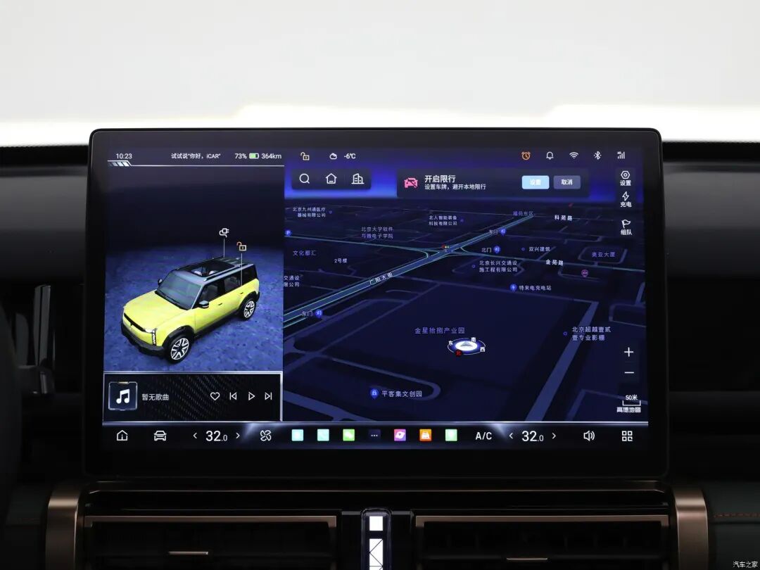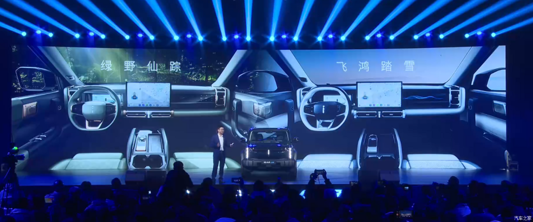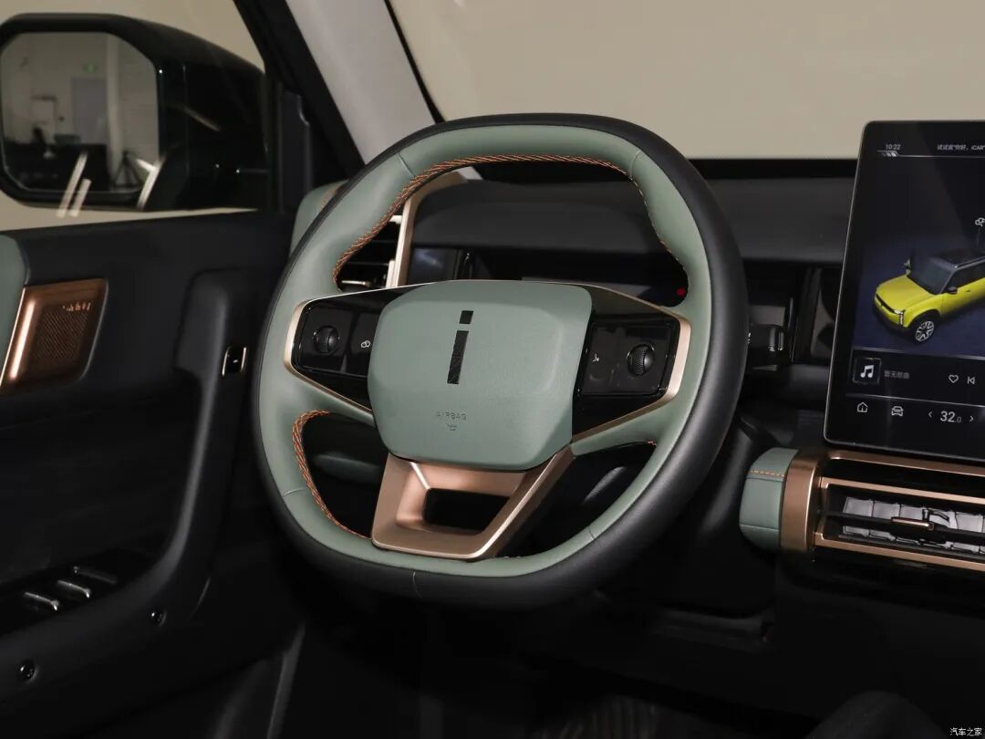 进入车内,新车采用的同样是十分硬派的设计风格,在多种配色以及材质的加持下,车辆内部展现出了与一般家用车不同的整体氛围。同时,新车在中控台布局方面延续了当前比较流行的设计思路,15.6英寸中控屏幕占据C位,但由于它独特的定位,新车中控台设计得比一般家用车型更“厚”一些,这也让设计简洁的中控台看上去没有那么单薄。