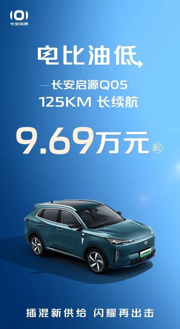 3月1日,长安启源官方宣布,启源Q05 125km长续航版车型9.69万元起售。作为参考,目前该车共有3款车型,分别是125 Air、125 Pro和125 Max,此前的起售价为13.19万元。