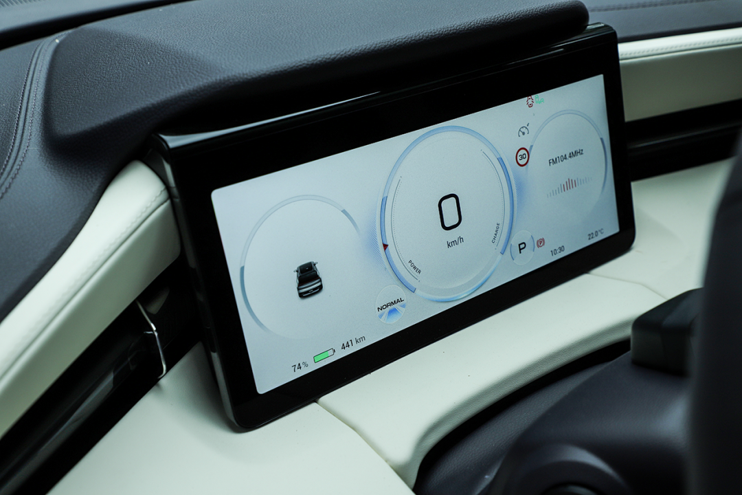 12.3英寸全液晶仪表盘的显示效果很出色,显示UI界面清新不油腻。15.6英寸中控屏画质细腻,且有着较高的屏占比。功能方面,中控屏内置ADiGO 4.0车载智能系统,支持AR导航、语音识别、面部识别、OTA升级、应用商店等,日常使用足够丰富。