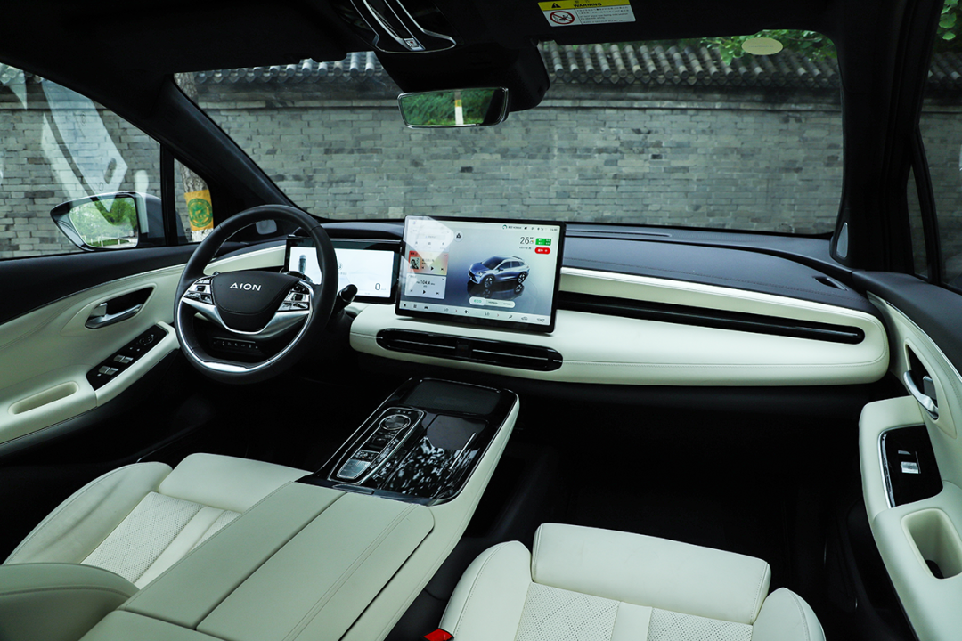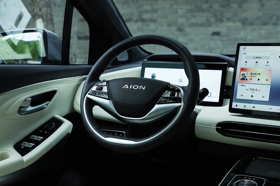 双辐式方向盘的造型细微调整,“AION”的字母标识取代了原有的品牌LOGO。方向盘支持4向电动调节(全系标配),盘辐采用NAPPA真皮包裹,手感细腻舒适。