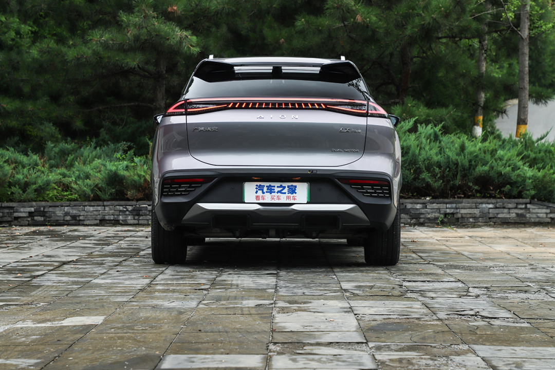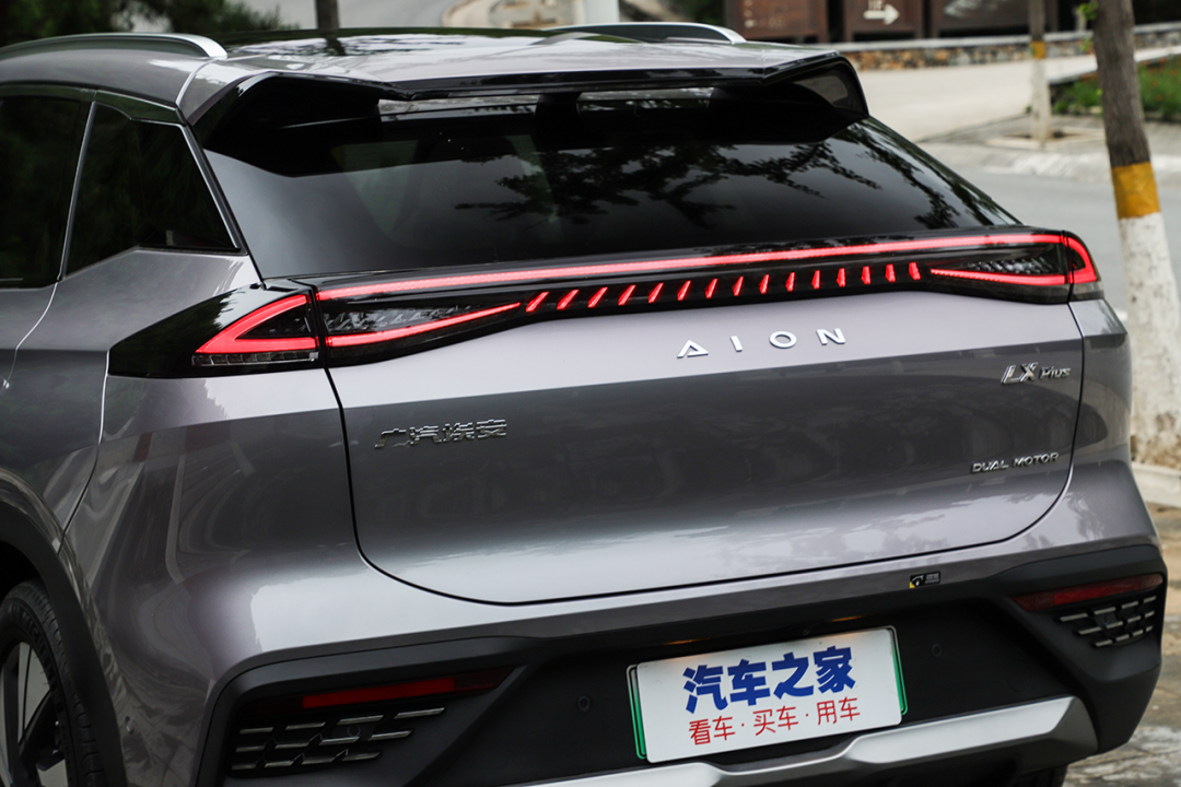 尾部造型基本沿用了老款车型的设计,仅针对车标、尾灯等细节之处做出细微调整。原有的车标被“AION”的字母标识所取代,视觉效果清爽了不少。贯穿式LED尾灯得以延续,灯腔内部经过熏黑处理,能够给人一定的新鲜感。