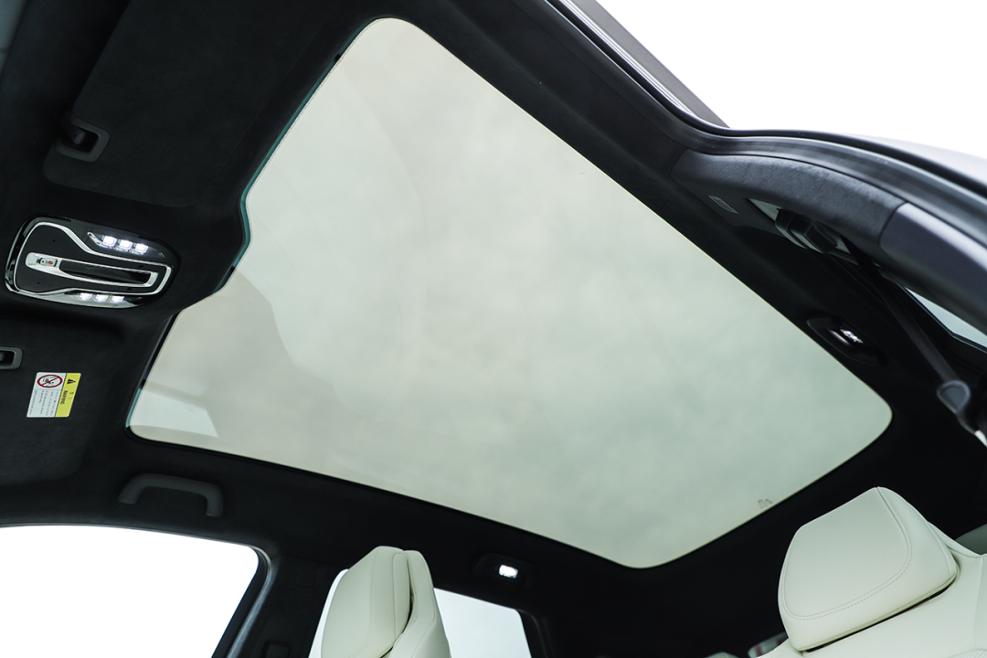 值得一说的是,新款AION LX取消了老款车型上的全景天窗,车顶配备了一块大尺寸的全景天幕,是否喜欢就因人而异了。