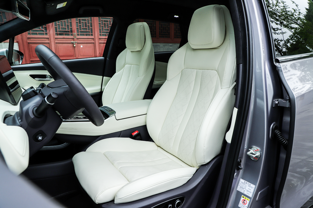 座椅采用NAPPA真皮包裹,触感顺滑细腻,内部填充物很柔软,乘坐舒适性很高。舒适性配置方面的表现也没有让人失望,前排座椅加热/通风为全系标配,很有诚意。