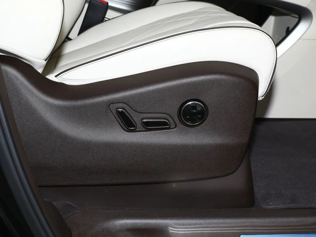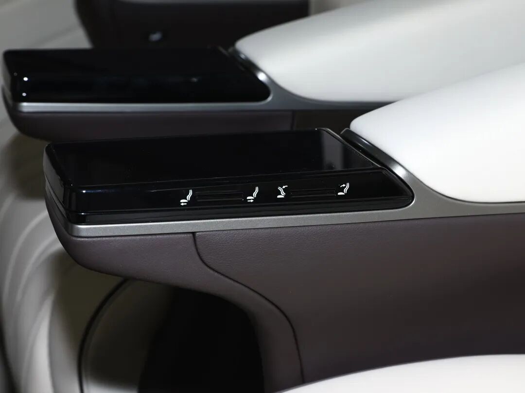二排座椅中央扶手在多功能液晶屏的基础上,增加了4向调节物理按键,如此一来更便于乘客在躺着的状态下控制座椅的角度与位置,也有助于初次接触腾势D9的乘客调节座椅。