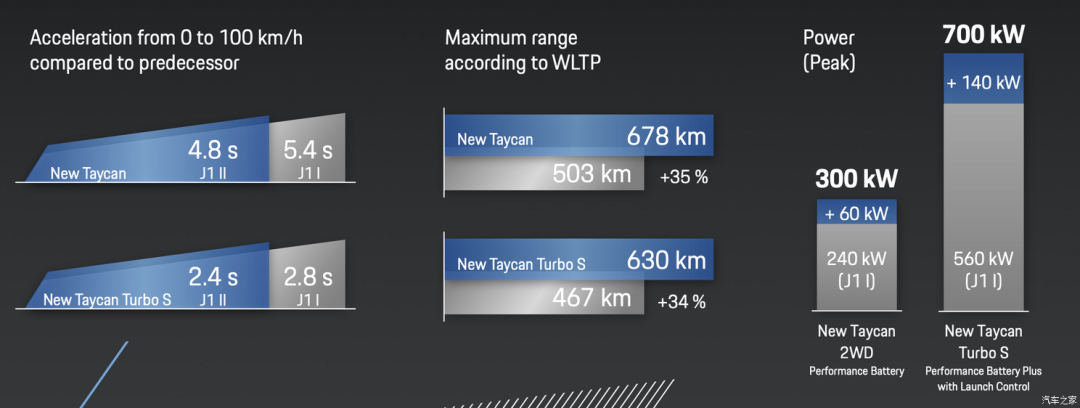 配备新的后桥电机,功率比旧款车型高出80kW,改进的脉冲逆变器、软件、更强大的电池、改进的热管理,下一代热泵以及改进的回收和四轮驱动策略,都是新款Taycan的不同之处。