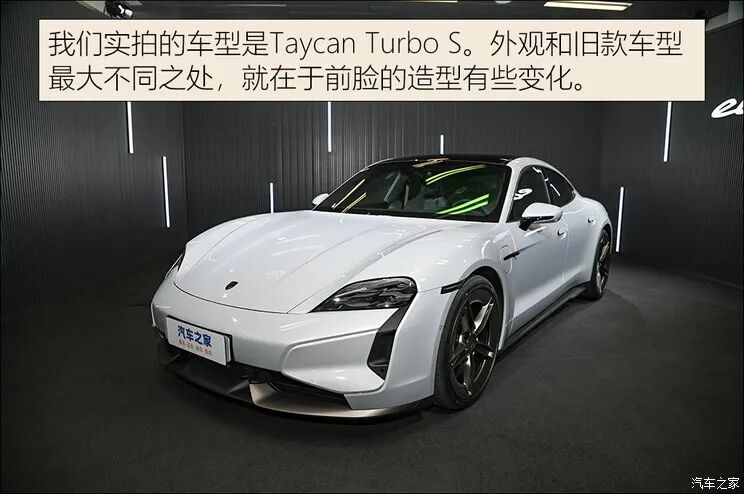今天来到首发现场的车型,是一款欧洲规格的Turbo S车型,可能跟国内正式销售的车型有所不同。中期改款的保时捷Taycan依旧是我们熟悉的样子,主要是在细节上进行了升级,最为明显的是在车头部分。