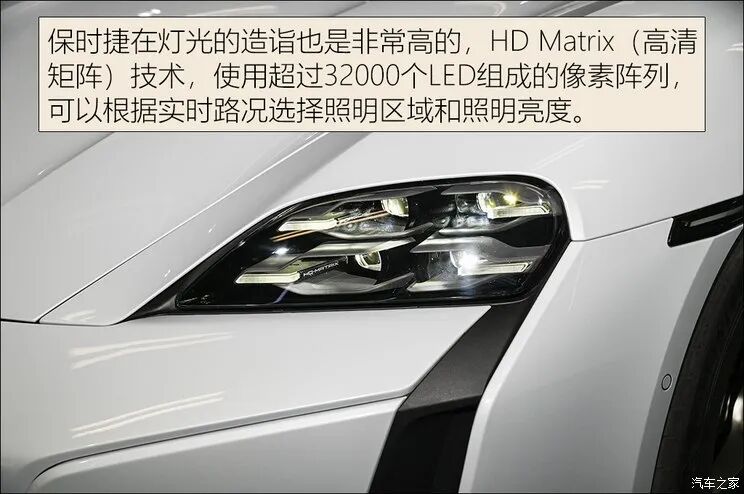 大灯组是全新设计的,采用HD Matrix(高清矩阵)技术的灯组,内部拥有超过32000个LED光源组成的像素阵列,可以根据实时路况选择照明区域和照明亮度,例如夜间对向来车时,大灯能够关闭一部分LED像素来防止直射对方驾驶员的眼睛,这项技术能够显著提升夜间驾驶的安全性。远光灯的射程可超过600米。另外,新车前脸进气口造型也进行了调整,空气动力学效果更加出色。