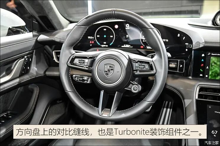 车侧线条没有变化,还是令人熟悉的配方。不过Turbonite配色的轮圈,其造型让人感觉有种改装轮圈的感觉,很好看,很性感。官方称全新的轮圈最高提升了40公里的续航(WLTP工况下)。另外,Turbo家族的刹车系统配置也经过升级,标配PSCB或是PCCB。