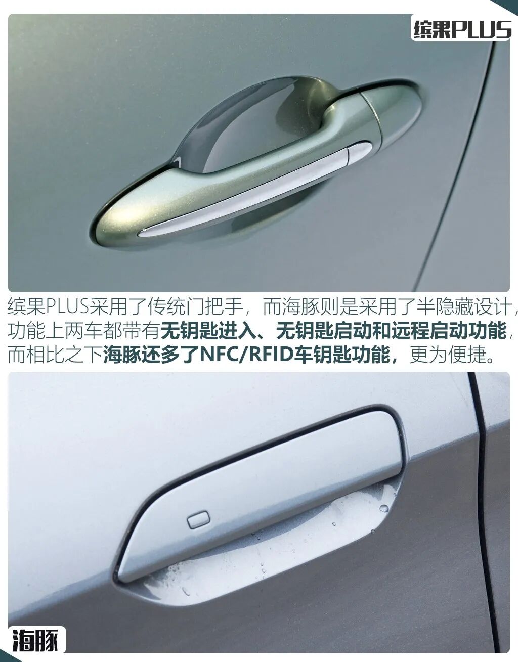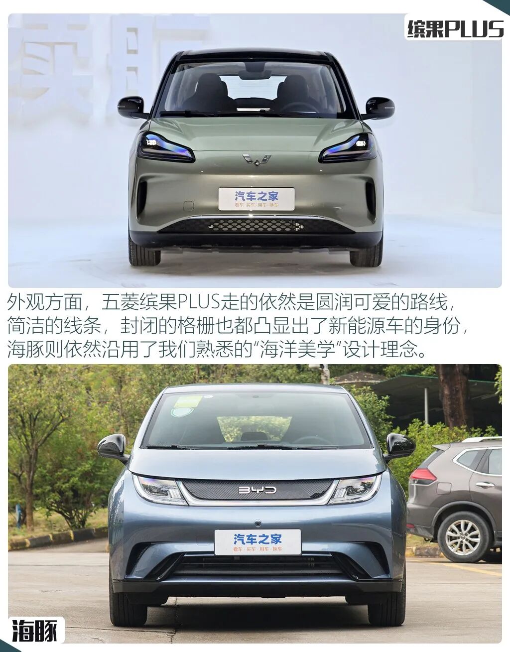 外观方面,五菱缤果PLUS延续了缤果的设计思路,走的是圆润可爱的路线,但整体尺寸更大,而海豚改款后外观变化并不大,依然是海洋美学设计理念,并新增了两个款车身颜色,整体时尚感更强。尺寸方面,两车都定位为小型车,尺寸参数方面,海豚除了车高基本都领先。在一些基础配置上,两者的表现基本相同,比如都配有LED大灯,无钥匙进入,倒车影像等,但海豚配有原厂ETC以及NFC钥匙是缤果PLUS所不具备的,而缤果PLUS则配有雨量感应雨刷。轮圈方面,入门版的海豚采用的是钢轮圈,但尺寸更大,而缤果PLUS采用的是铝合金轮圈。