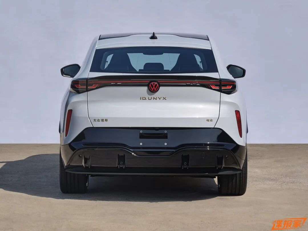 来到侧面,这款车拥有十分动感的造型,车身线条呈现出俯冲的姿态。A柱、B柱均采用黑色涂装,官方表示这样的设计旨在营造出赛车头盔的全景效果。该车会搭载21英寸的机甲风格轮圈,这在以往的大众车型上是不可能看到的。ID.UNYX与众拥有一体式的尾部设计,集成了后扰流板、尾灯以及高位刹车灯,U型贯穿式尾灯采用三层立体悬浮叠片造型,预计会拥有不错的点亮效果。