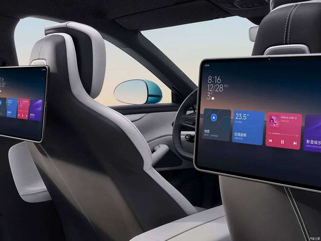 而小米SU7的中控屏可支持物理按键的拓展,该车还支持小米平板在后排的拓展,支持30+控车功能,同时也支持苹果iPad上车。