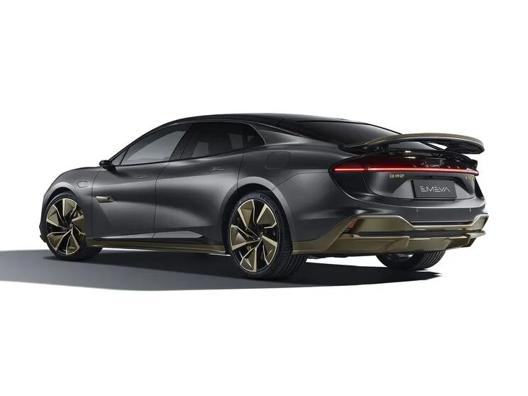 路特斯EMEYA在外观设计上延续了家族的最新风格,整体设计十分犀利。新车的车头采用超跑风格线条,鲨鱼鼻式车头能够梳理气流、减少风阻。双层L型日行灯被安排在车头上方,真正的大灯组与黑色饰板融为一体。黑金版则进一步采用了专属的哑光星辰黑车漆,展现出了路特斯黑金王朝的独有气质。