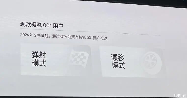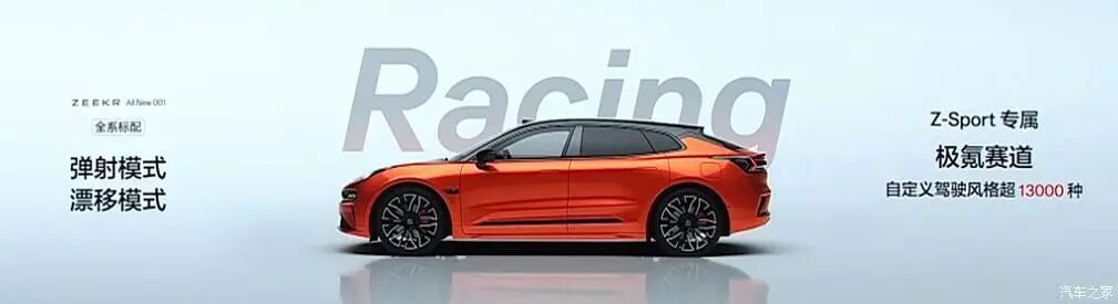 新款极氪001全栈搭载800V高压平台技术,底层系统全面重构,前后电机均搭载极氪001 FR同款双碳化硅高性能电驱系统,提供10种驾驶模式可选,包括与001 FR同款的弹射模式和漂移模式,全系标配,交付即可用;Z-Sport版本还能升级专属的赛道模式,可自定义驾驶风格超过13000种。