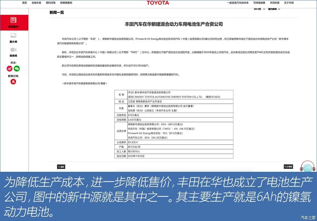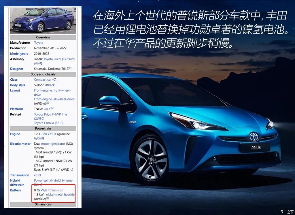 从第一代开始,丰田的混动车型搭载的都是镍氢电池,为减少零部件受OEM制约以及原材料上涨导致的成本大幅提升,丰田为此投入巨资在世界各地建立电池工厂。但镍氢电池的能量密度以及循环特性已无法满足新时代产品需求。