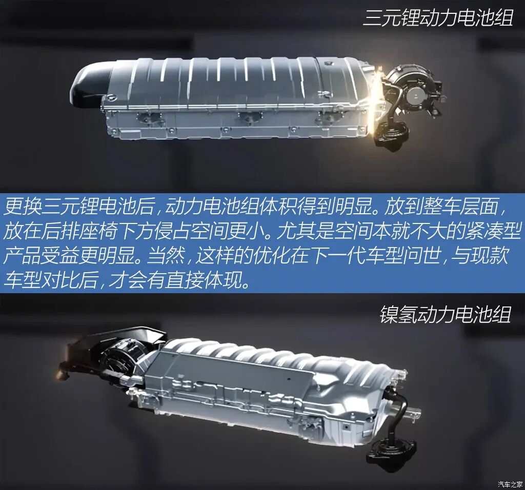 在电池技术没有突飞猛进发展的背景下,唯有更换电池正极材料,才能在不改变整体尺寸的前提下,迅速扩容。当然,也可以选择缩小尺寸,保持原有电池容量。两种技术路线都能尽可能的减少动力电池组容量增加对车内空间的侵占。