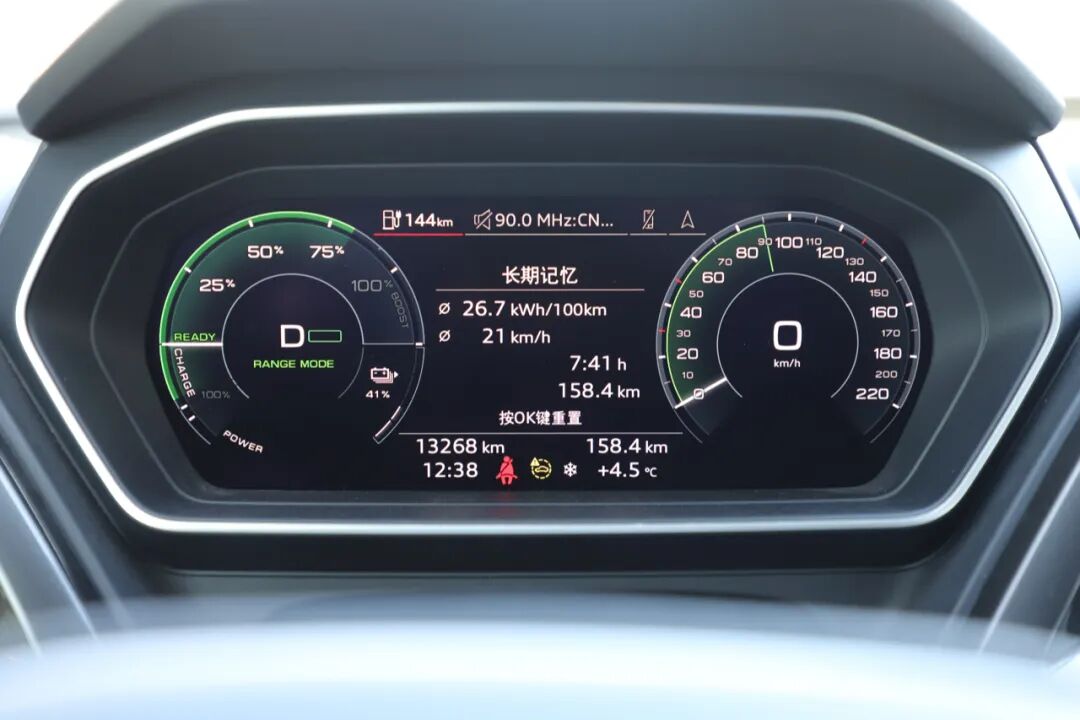 Q4 e-tron还提供了RANGE MODE,简单理解就是长续航模式,开启该模式后,车辆会以最节能的工况行驶,比如车辆最高时速限制在90km/h、空调关闭等等。
