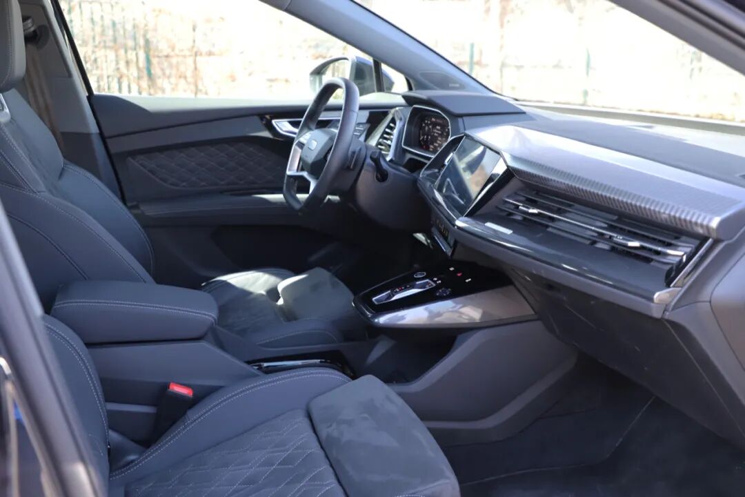 奥迪Q4 e-tron内饰的造型独特,整体采用环抱设计风格,中控区域采用非对称布局,大部分功能按键都倾向驾驶员一侧。无论是中控车机屏还是下方空调控制都触手可及,使用起来十分方便。