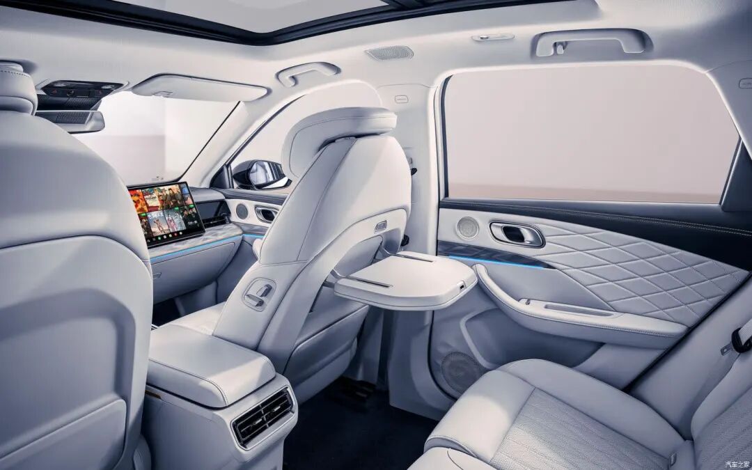 车内来看,内饰将采用环抱式布局,拥有细长的液晶仪表盘和大尺寸中控屏设计,中控屏一直延伸到副驾驶位置,带来更畅快的影音娱乐体验。浅色的内饰整体质感不错,座将采用菱形花纹设计,头枕上将配备哪吒标志。此外,哪吒L还将配备车载冰箱,进一步提升夏日用车体验。