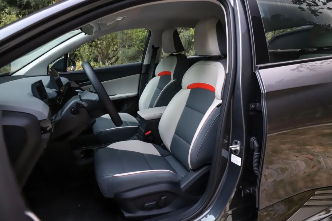 座椅采用皮革材质包裹,两侧凸出的侧翼看着比较运动,但其实座椅填充比较柔软舒适。多种颜色搭配令座椅有了不错的时尚感,主驾驶座椅采用电动调节,前排座椅支持加热。