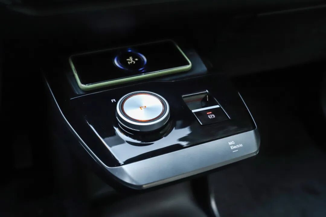 旋钮换挡机构以及电子手刹功能集成在“浮岛”之上,前方储物格还集成手机无线充电功能。