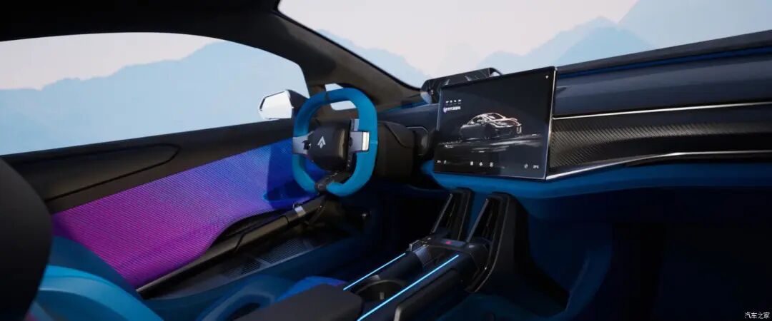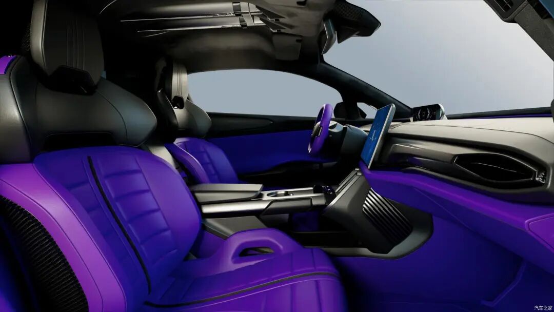 材质和颜色上同样玩得很酷,内饰采用电光渐变色、材质上玩了3D立体编织,用的是纯植物鞣制环保真皮、生物基仿麂皮和环保纱线。