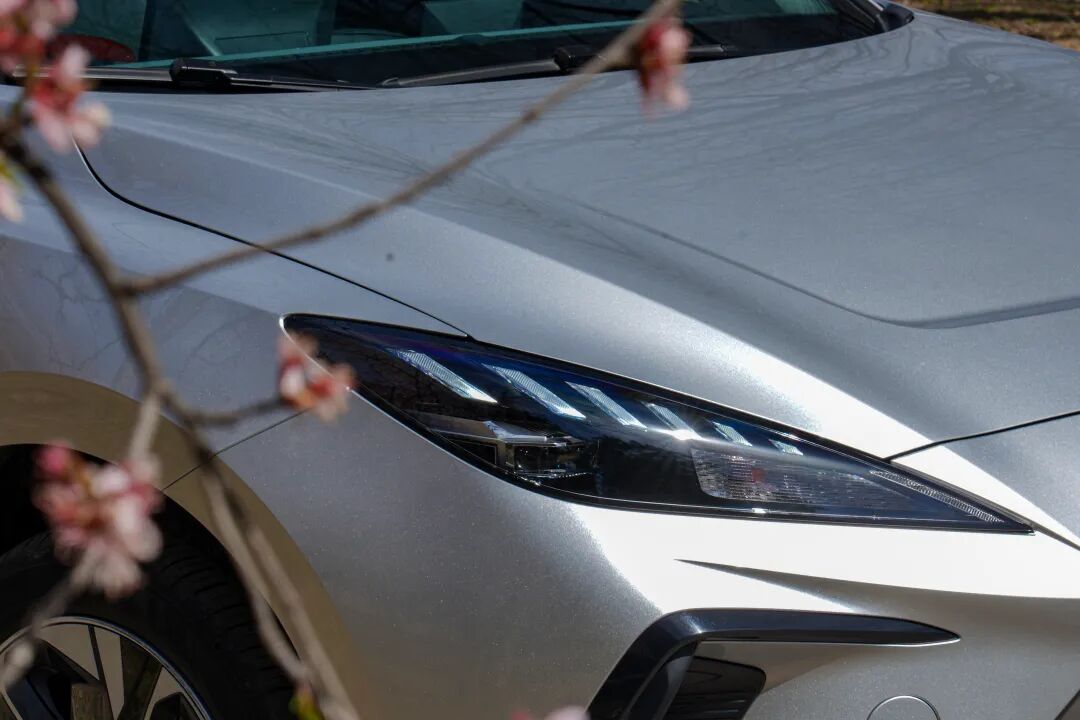 柳叶型前大灯造型尤为犀利,日间行车灯酷似“睫毛”,颇具辨识度,功能上新能源车型常见的它都有。重点是没有使用贯穿式灯带,这样一来使其有着自己的特色,或许也是考虑到了欧洲消费者的审美需求。