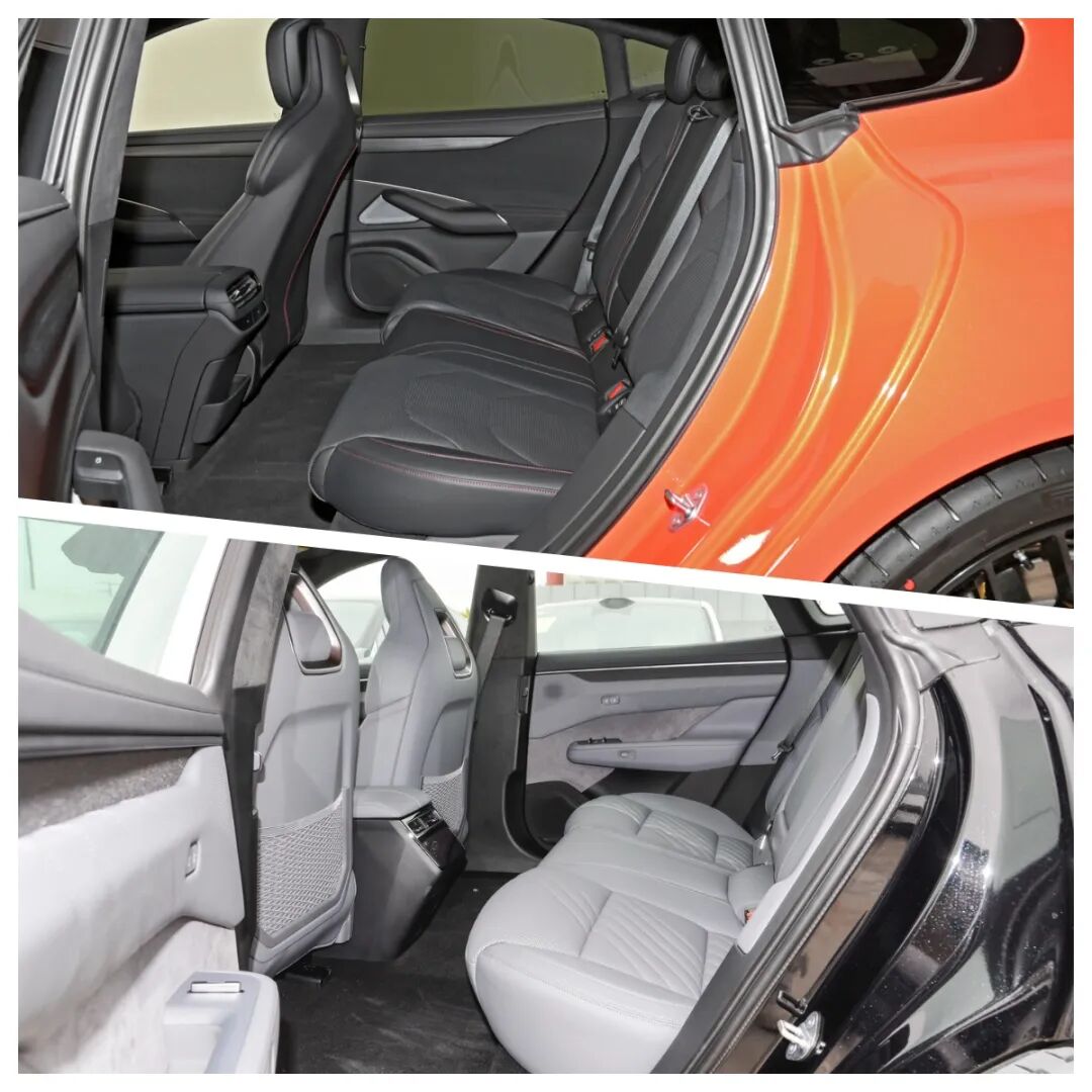 当然,车尾才是这场较量的关键,小米SU7采用标准的轿车布局,后备厢与座舱相对独立,提供493L的储物空间(后驱为517L),常规纵深1136mm,放倒座椅后还能进一步拓展装载能力,此外前备厢容积达到了105升;