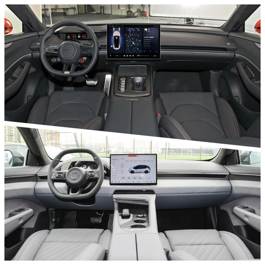 两台车均搭载最新的高通骁龙8295芯片,相比之下,小米澎湃OS绝对是SU7的更大卖点,基于小米强大的消费级电子产品生态,SU7上也具备强大的互联生态,横跨人车家多个方面,支持手机跨端投屏。