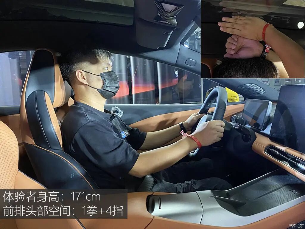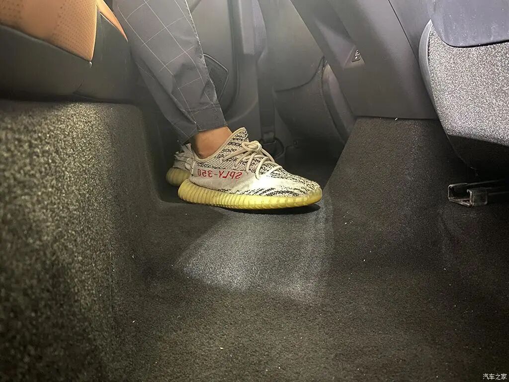 在乘坐空间方面,身高171cm的体验者进行体验,前排的头部空间为1拳+4指,后排的头部空间为4指,腿部空间还有2拳多。后排地板存在隆起,还好41号的鞋子可以放在上面。