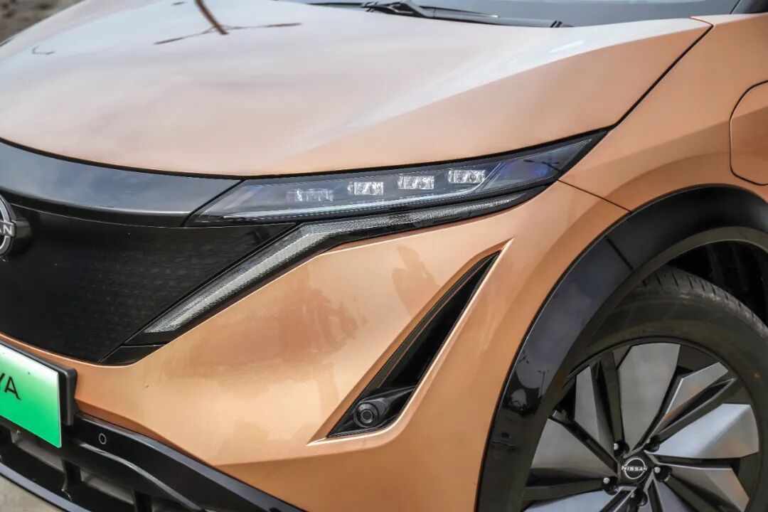 Ariya采用墨影晶盾前脸设计,简约的同时亦有科技气息。封闭式格栅与LED大灯组融为一体,前包围的三角形开口看上去有一丝邪魅,底部大面积亮黑涂装以及纵向线条进一步提升了时尚感。