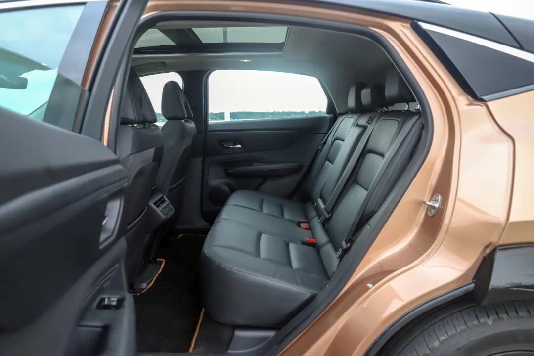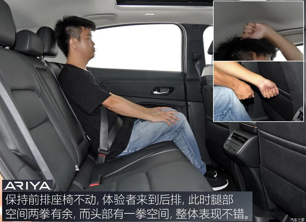 后排座椅靠背角度够大,坐垫也很厚实,再加上平整的地板,舒适性自然不用担心。此外,后排乘坐空间也比较出色,虽然采用溜背式车顶,但在后排头顶上方有一个偷空间设计。具体空间表现各位请看下图。
