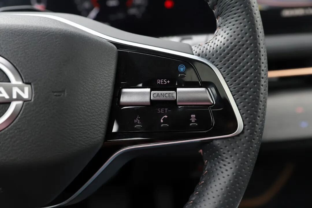 方向盘右侧的蓝色按键可以激活日产Pro PILOT驾驶辅助系统,前/后方碰撞预警、疲劳驾驶提示、主动刹车、车道保持、并线辅助、全速自适应巡航、倒车车侧预警等功能令Ariya达到L2级驾驶辅助水准。