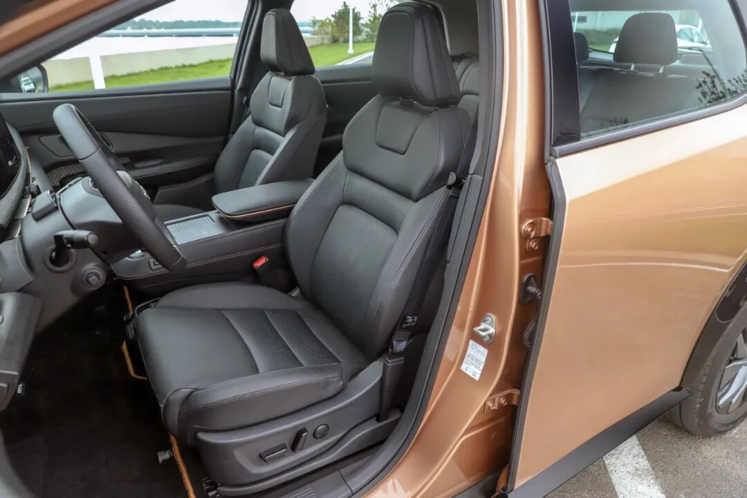 座椅采用真皮材质包裹,填充比较柔软舒适,但没有天籁“大沙发”那么软。前排座椅带有电动调节和加热功能,主驾驶座椅支持座椅位置记忆。