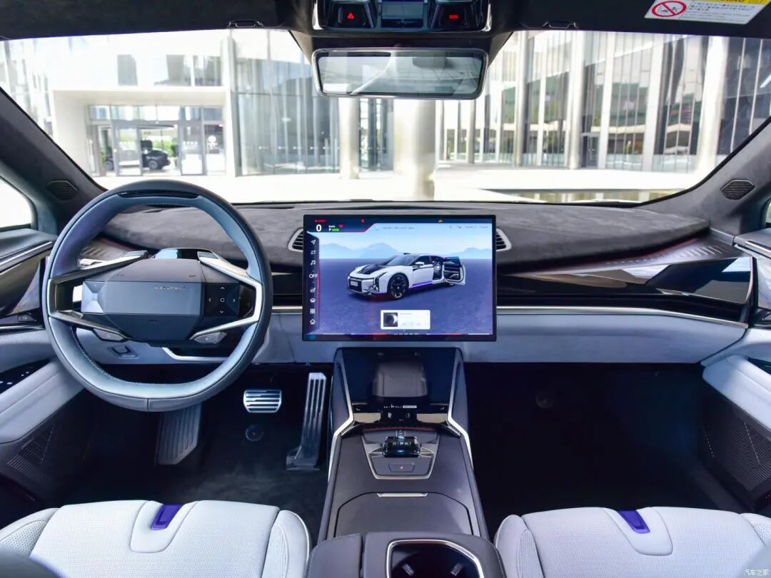 HiPhi Z的内饰同样有很强的机能风,实拍的这台车型内饰用料非常豪华,可以触碰到的地方都有高档皮质包裹。