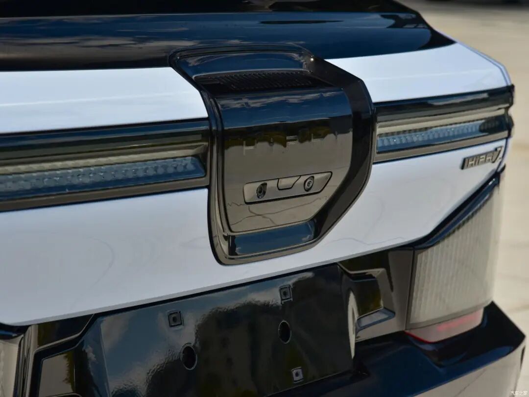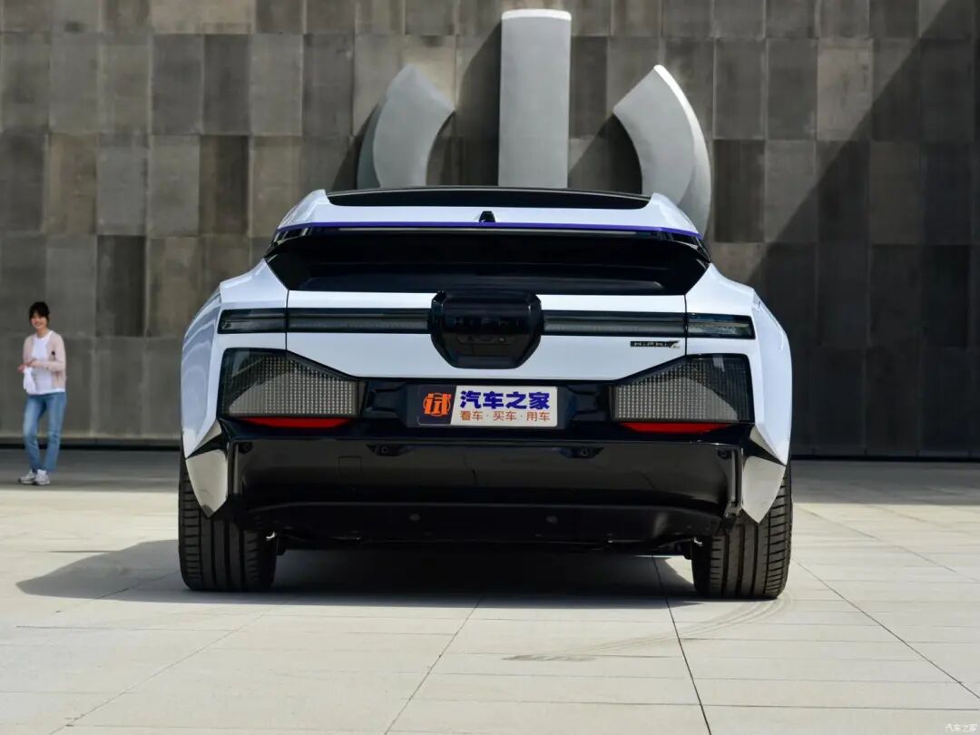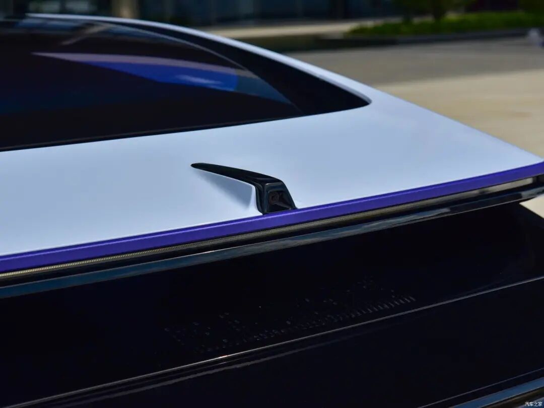 HiPhi Z的车尾也给人留下了十分深刻的印象,顶部的固定尾翼配合车尾可升降尾翼,时速超过80km/h时会自动升起提高下压力,也让它的尾部线条非常复杂。