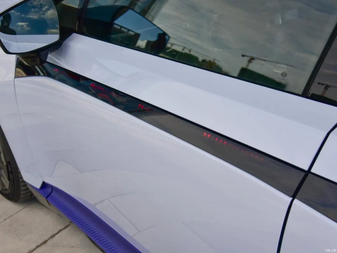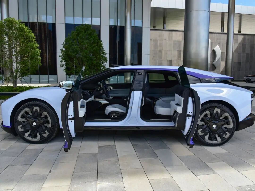 除了极其个性的设计理念,也延续了HiPhi X车门设计思路,在这台HiPhi Z上采用了NT无框对开门,没有车门拉手,控制开关在B柱。