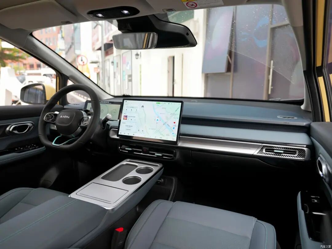 相比现款AION Y,新车中控台依旧是T字型布局,不同的是它取消了旋钮式换挡机构,改用智驾一体式怀挡设计(快速下拨两次就激活ACC+车道居中功能),这一点可谓是紧随特斯拉的脚步。