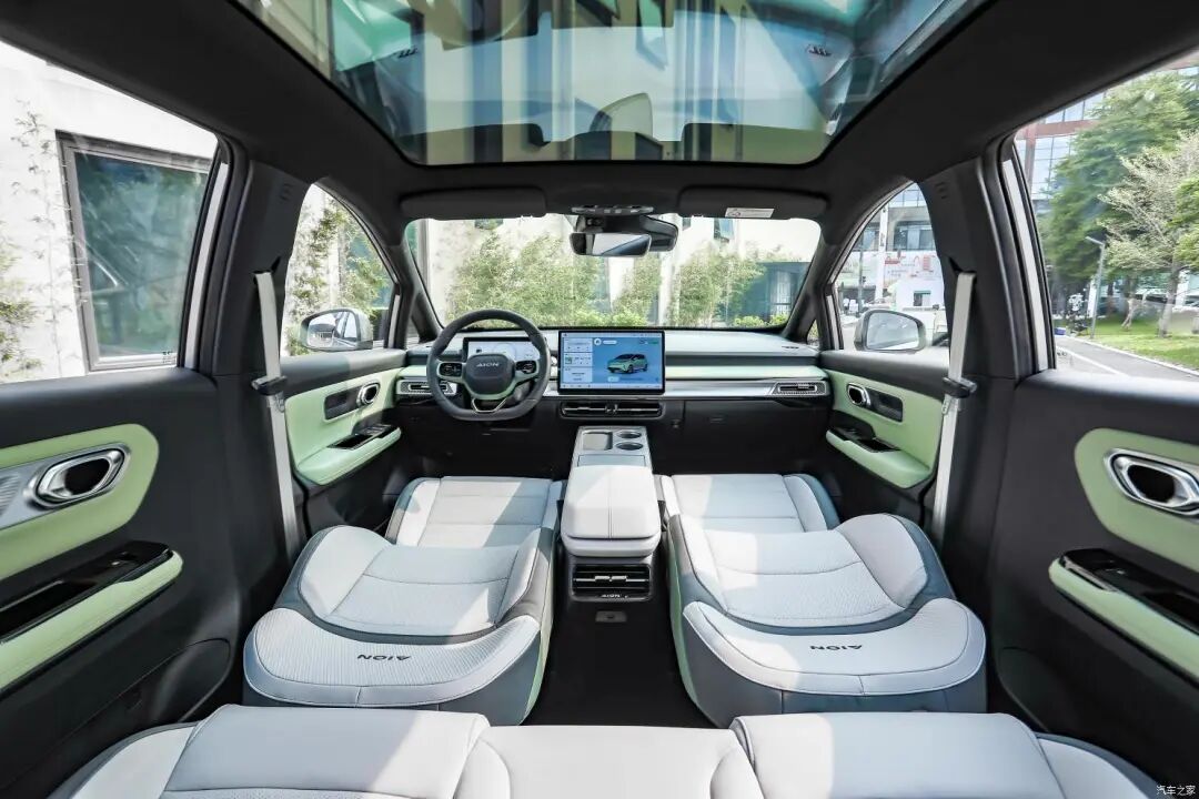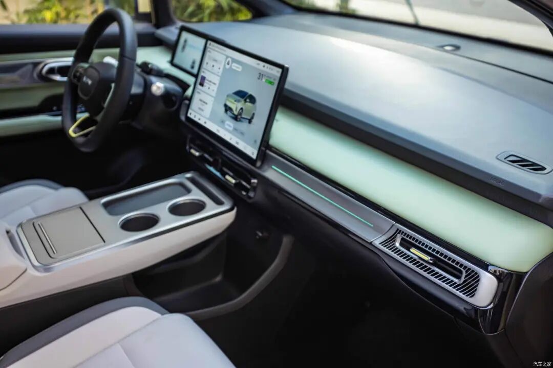 内饰新增的配色——零焦绿,也是AION Y Plus的一大亮点,既然是一台为年轻人而造的车,自然就得懂年轻人的想法,当今社会给到年轻人的压力可不小,设计师希望用这种方式将绿色搬进车内治愈大家,想法很好。