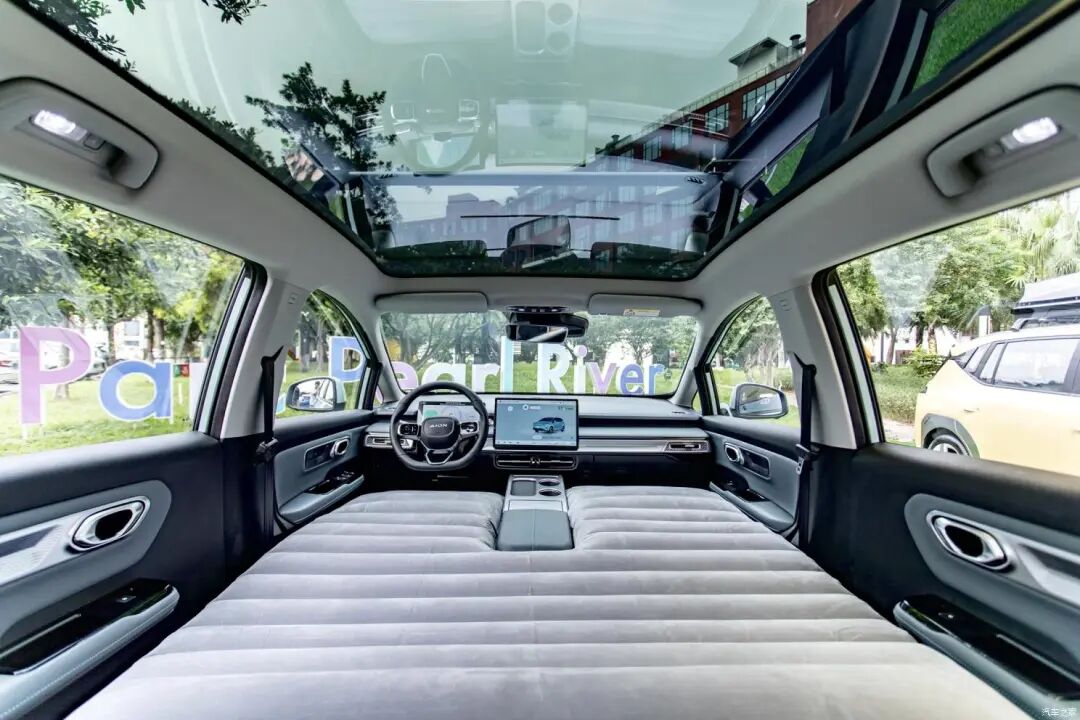 正如前文提到的露营模式,新车是具备220V对外放电(移动电站)的功能,结合前排可以全平放倒的座椅,我说这款车是一个移动的家应该也没错。